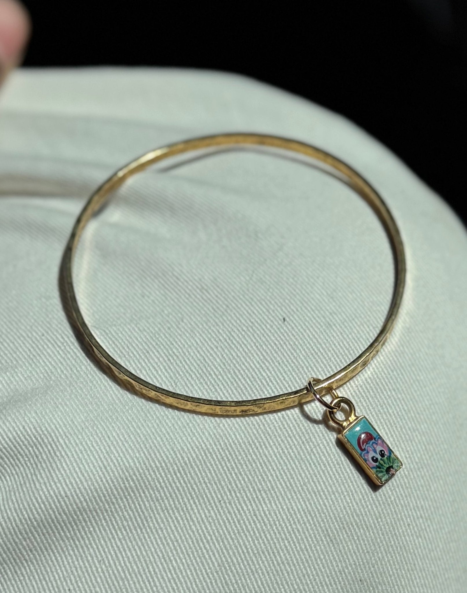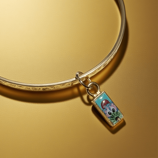 This piece blends classic elegance with Philly pride. The warm glow of 14k gold fill elevates the sleek 3mm bangle, while the hand-painted Phanatic charm adds a pop of playful color. Each bracelet is hand-soldered for heirloom-level durability and painted with hours of meticulous work, making it as unique as the fan who wears it.