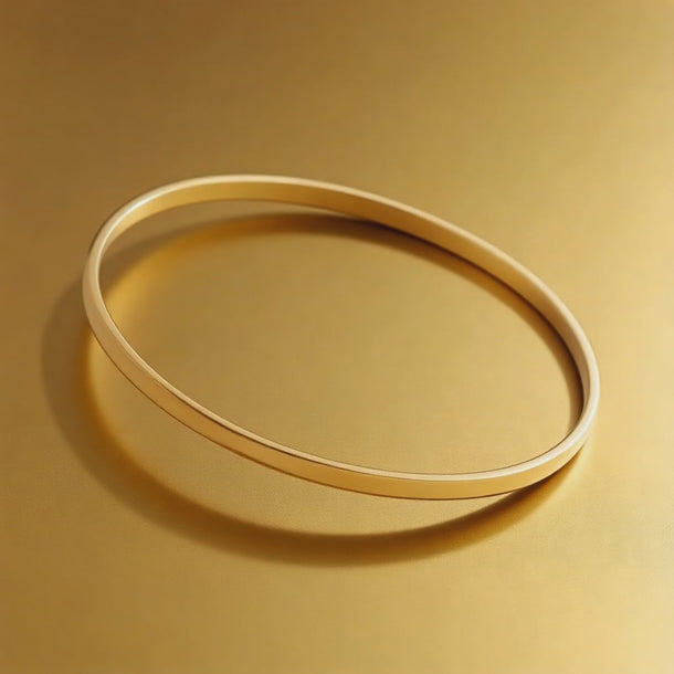 - 3mm wide, 1.5mm thick solid .925 sterling silver flat bangle, filled within a rich layer of 14k gold