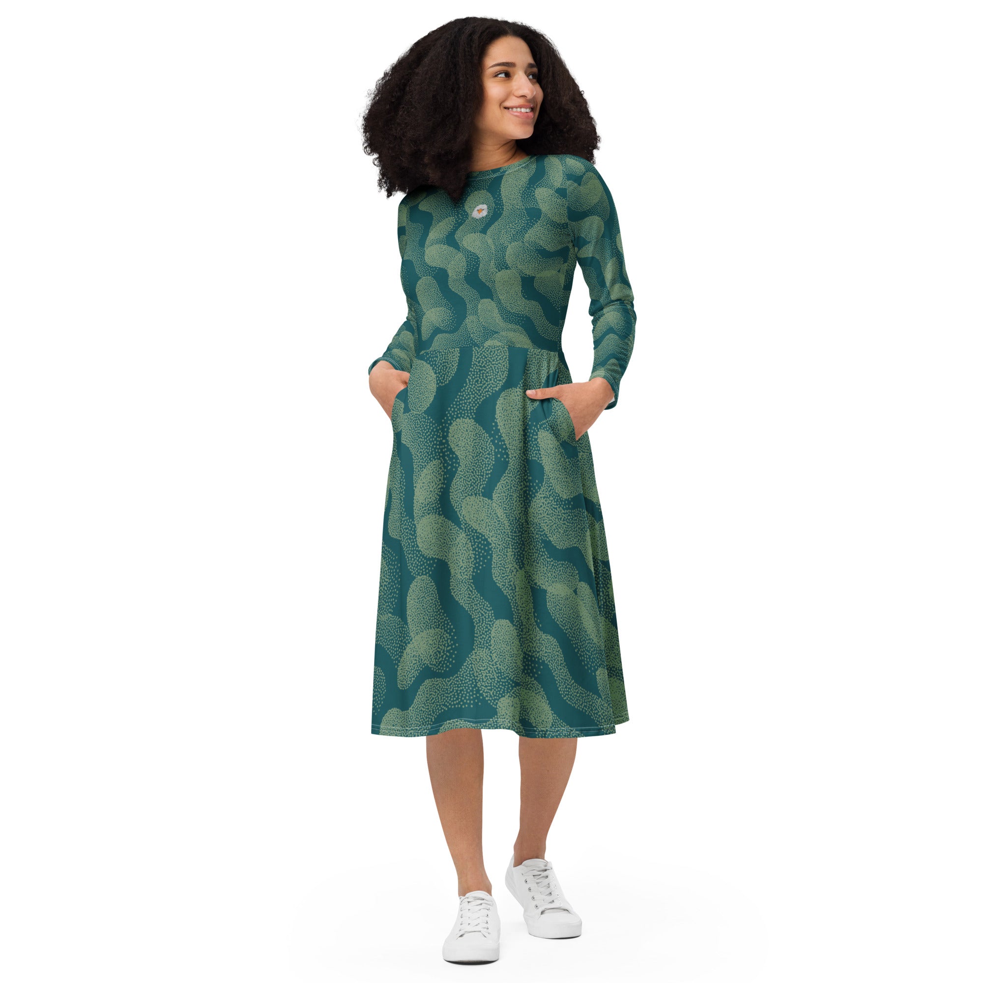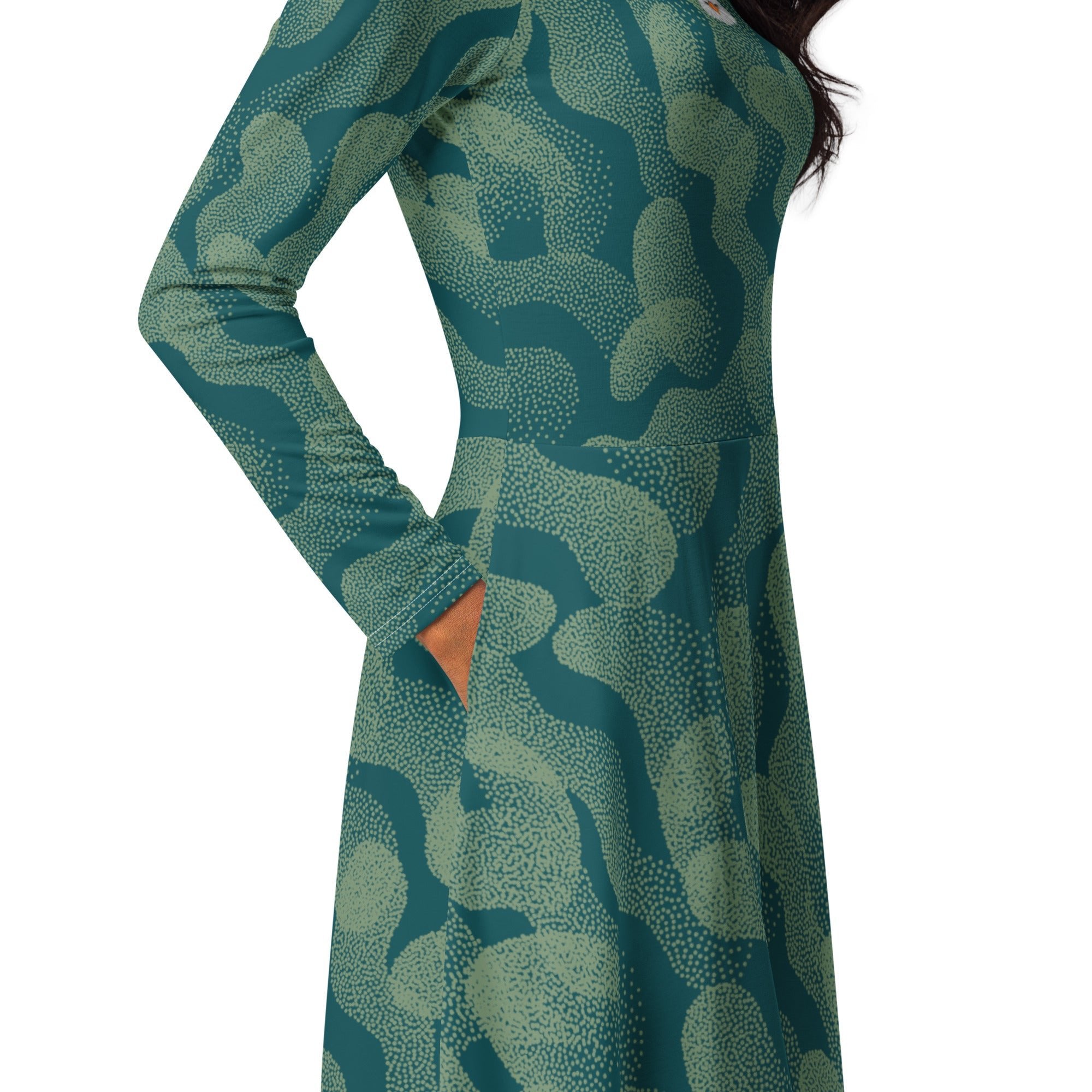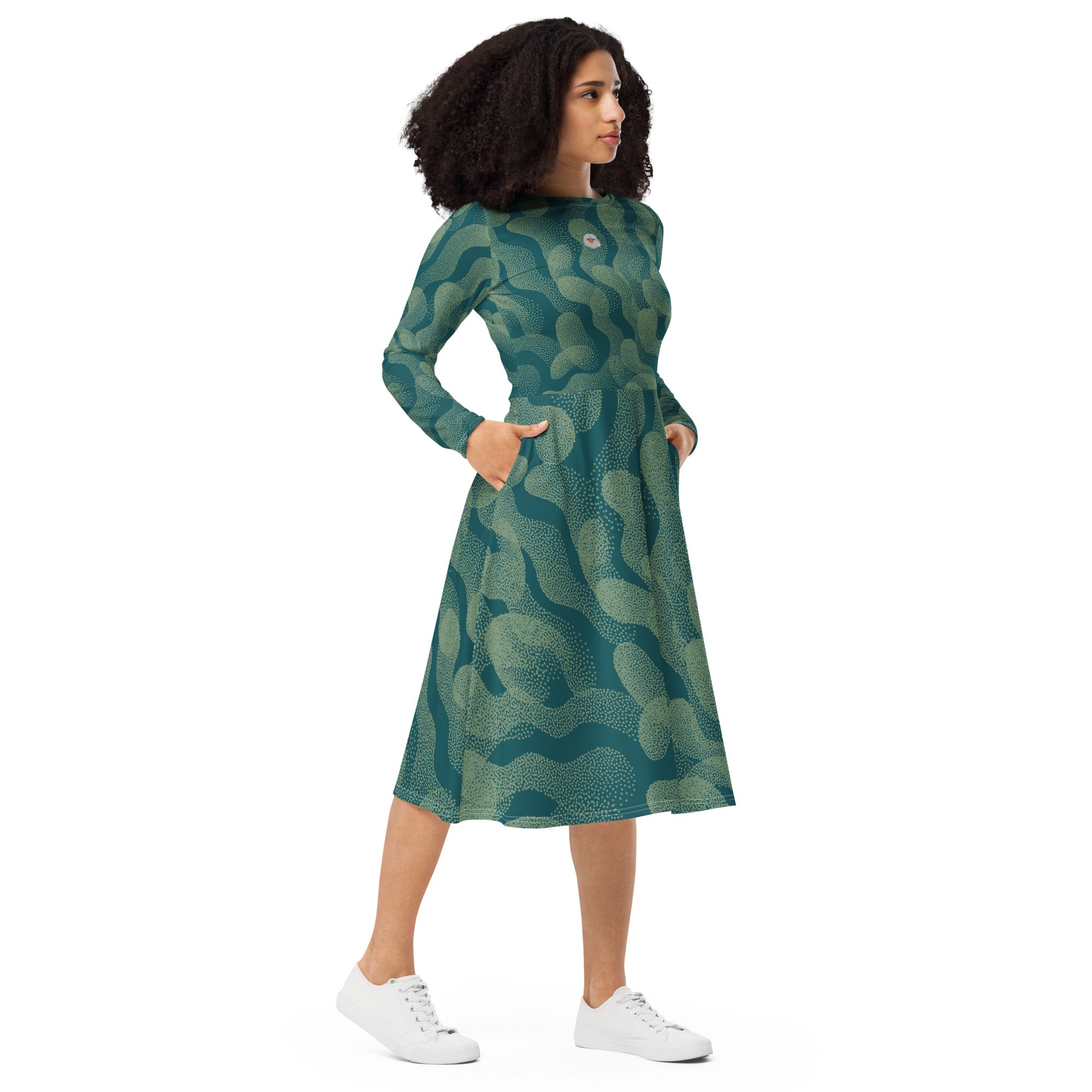 Original Eagle Head Art Print Long Sleeve Midi Dress — Philadelphia Eagles Artwear