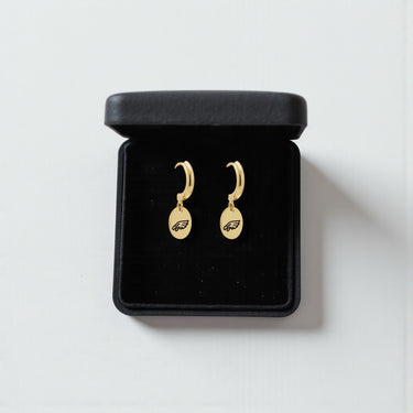 Eagles 14K Gold Filled Hoop Earrings with Engraved Oval Dangle | Engraved Philadelphia Eagles Jewelry