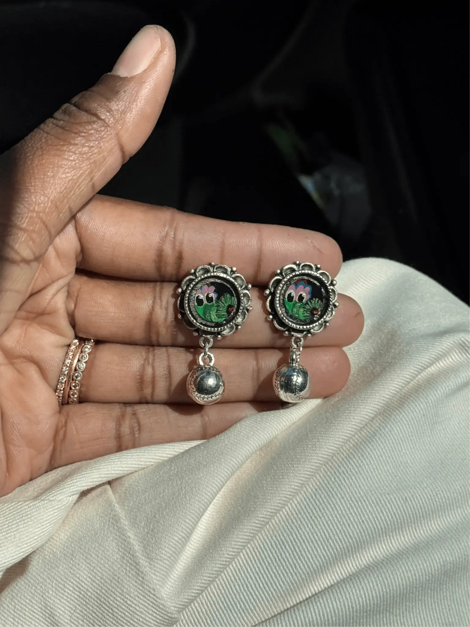 Philly pride meets vintage charm. These earrings pair a hand-painted, high-detail Phanatic portrait with playful baseball charms for the ultimate game-day accessory. The antique silver setting gives a timeless touch, while the black background and shimmer accents make the colors pop.