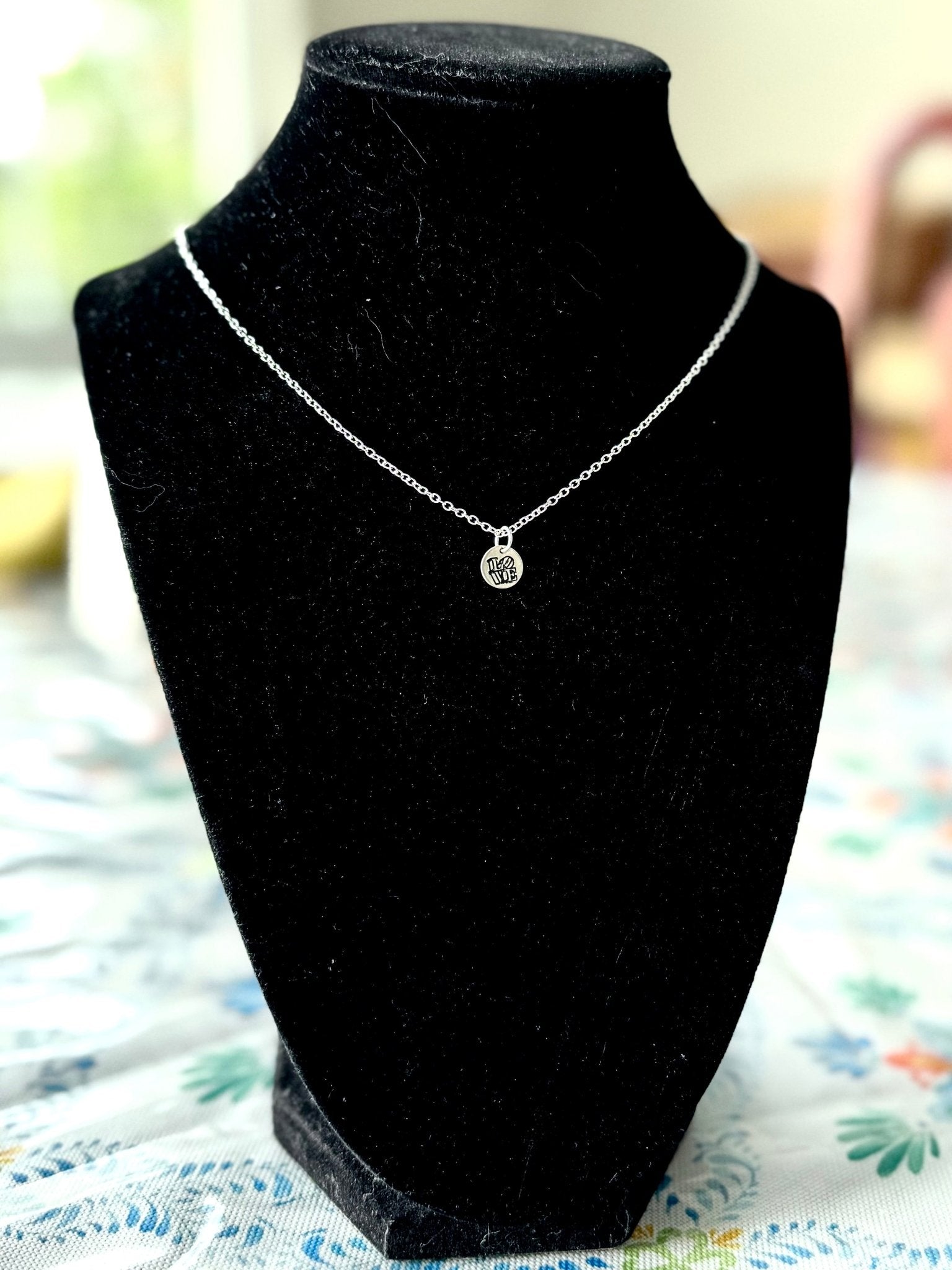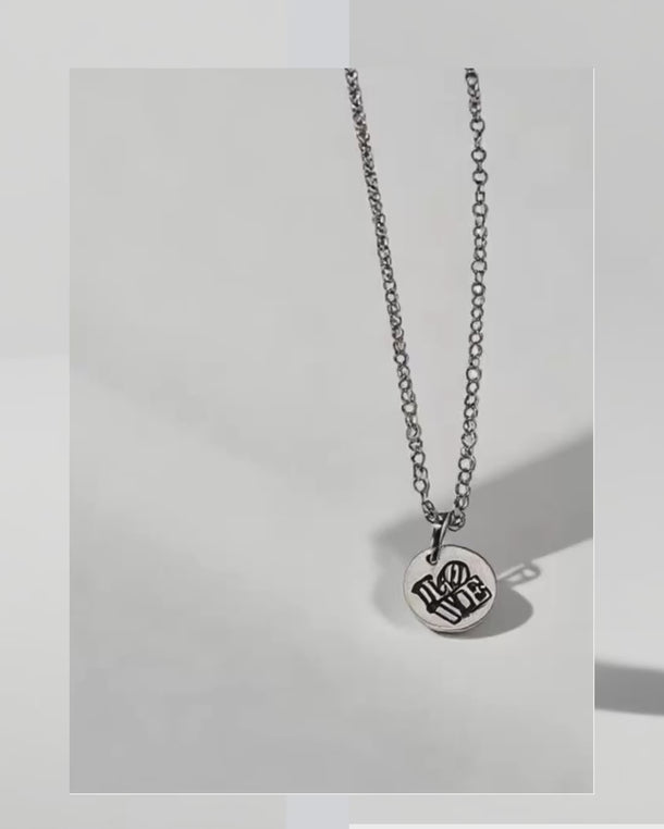 Sterling Silver LOVE Pendant Necklace – 8mm Hand Engraved