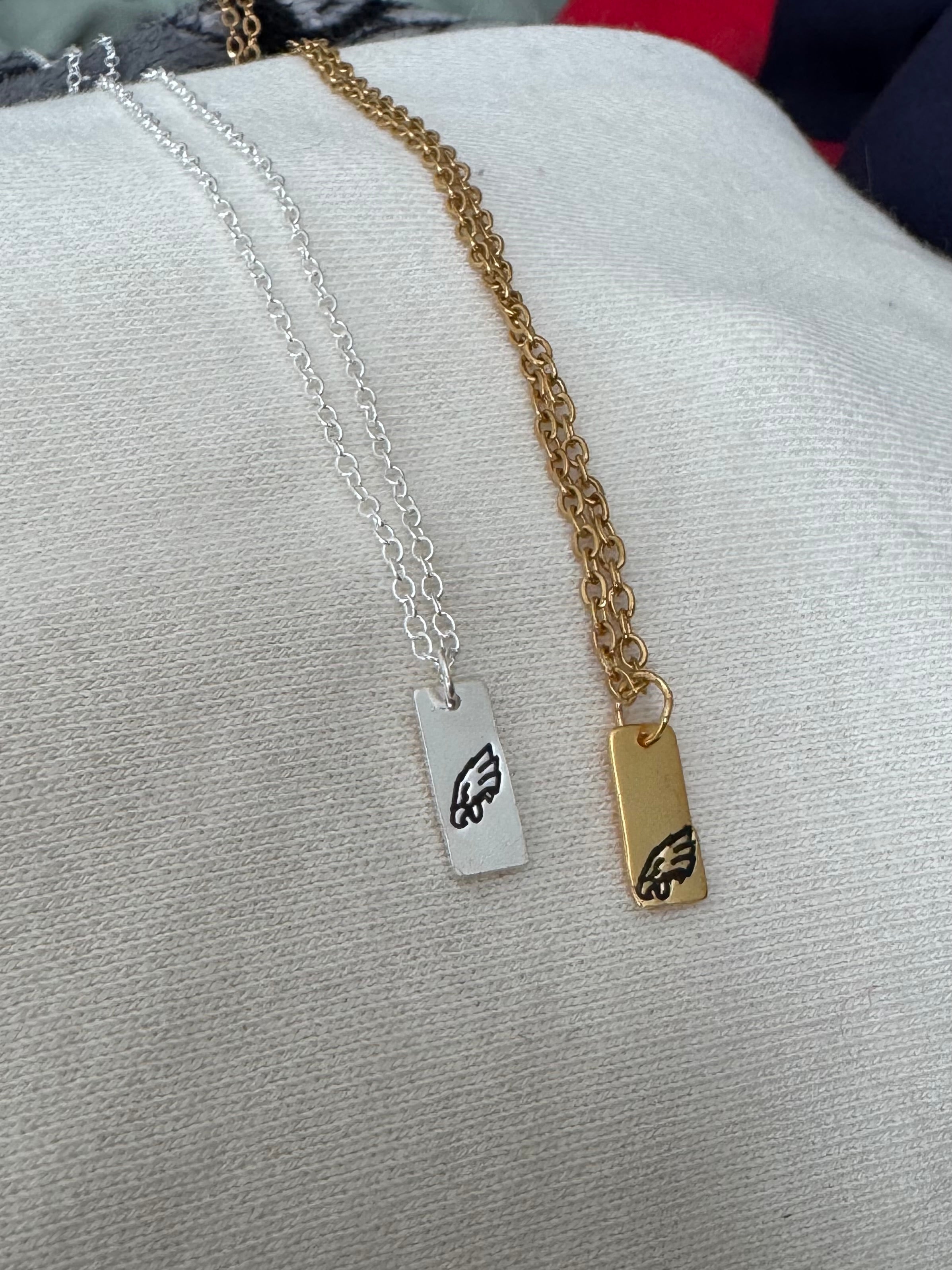 Engraved Eagles Necklace | Rectangle 14K Gold Filled Sterling Silver Necklace