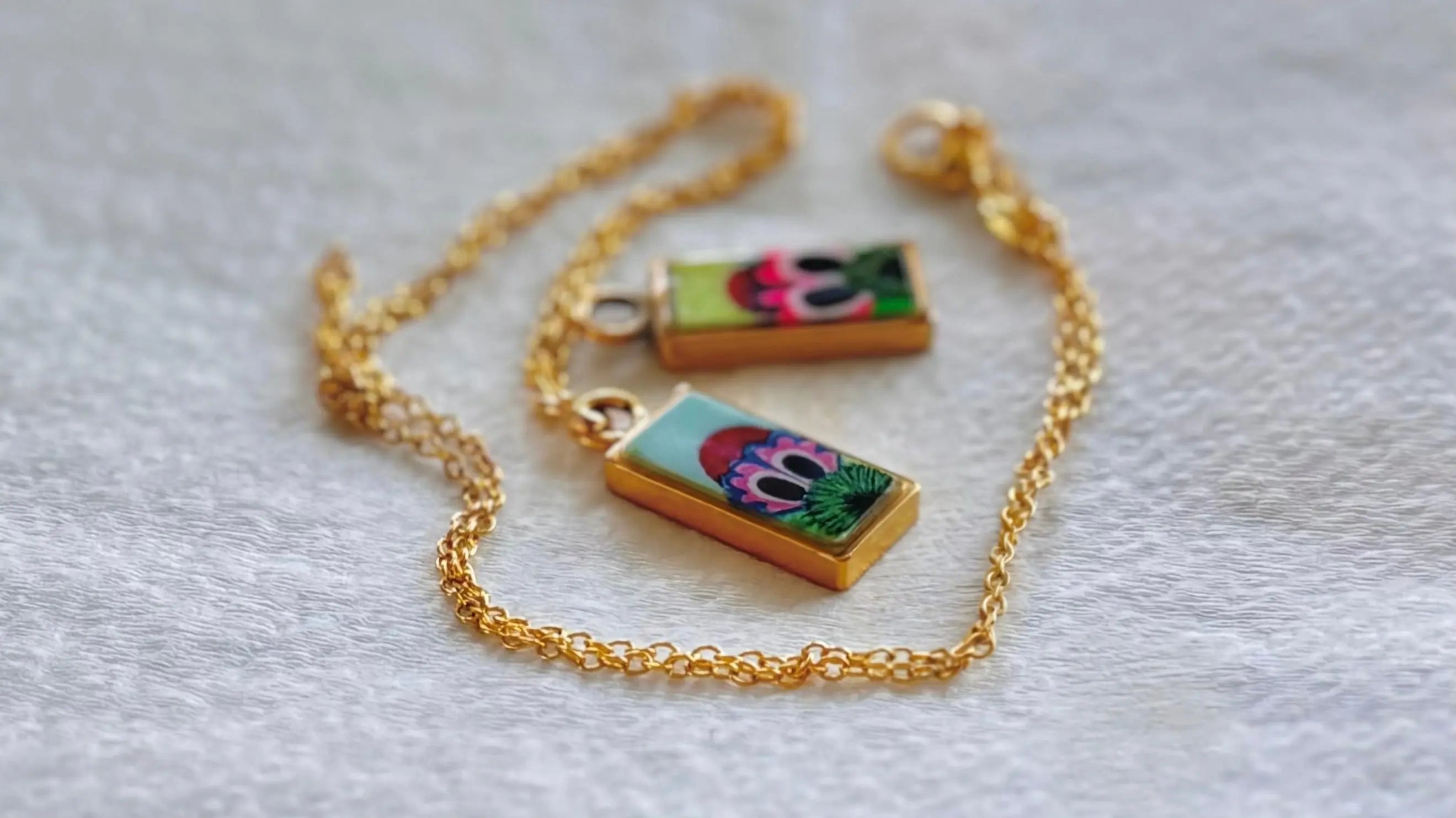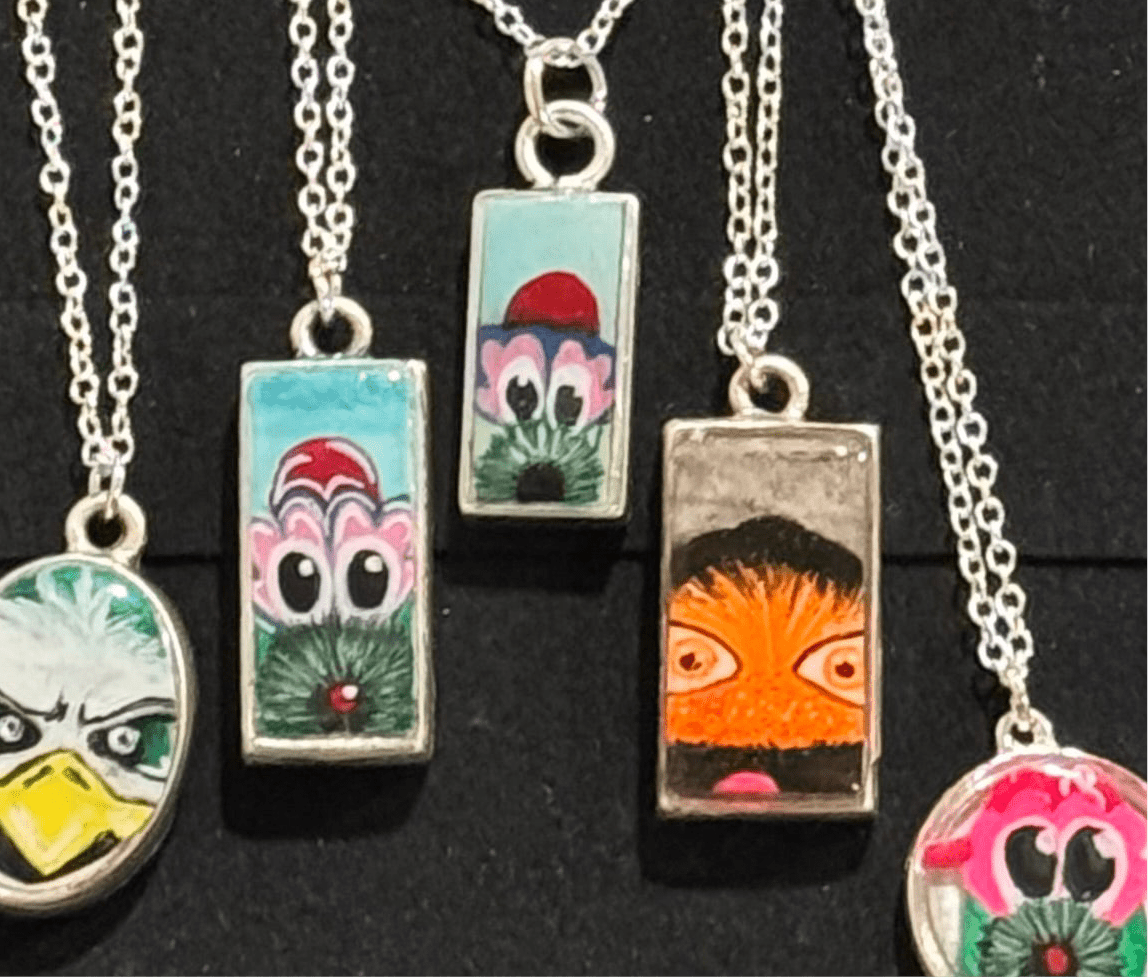All of our jewelry is crafted with high quality materials including resin, fine metal plated wire, glass beads, and polymer clay.