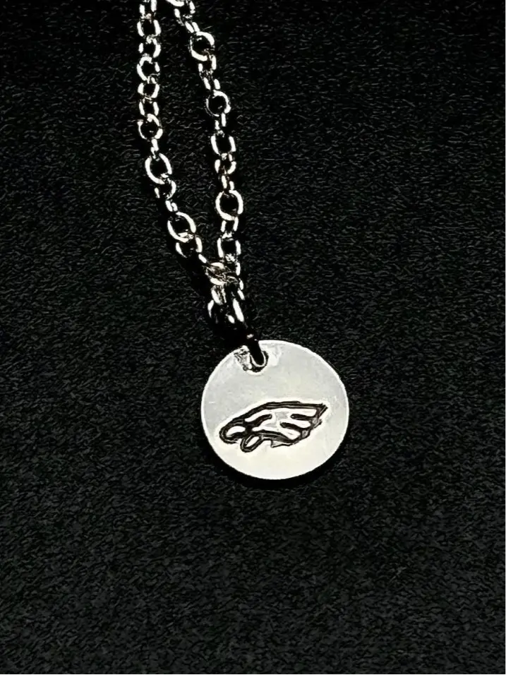This dainty but fierce necklace keeps your Eagles pride close to your heart—literally. Each 8mm pendant is hand engraved with precision into sterling silver, making it the perfect lowkey piece for any Birds fan who still wants to keep it classy. It’s an everyday chain that holds up through game days, tailgates, and city celebrations.